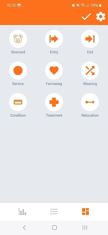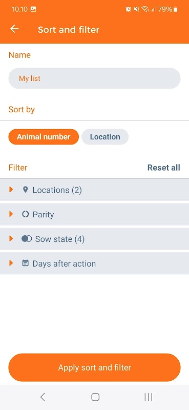 لیست اقدام برای خدمات، زایمان، و از شیر گرفتن نیز موجود است. این امکان وجود دارد که لیست کاری خود را ایجاد کنید و از لیستی با همه حیوانات استفاده کنید، جایی که چندین فیلتر و مرتب سازی در دسترس دارید.