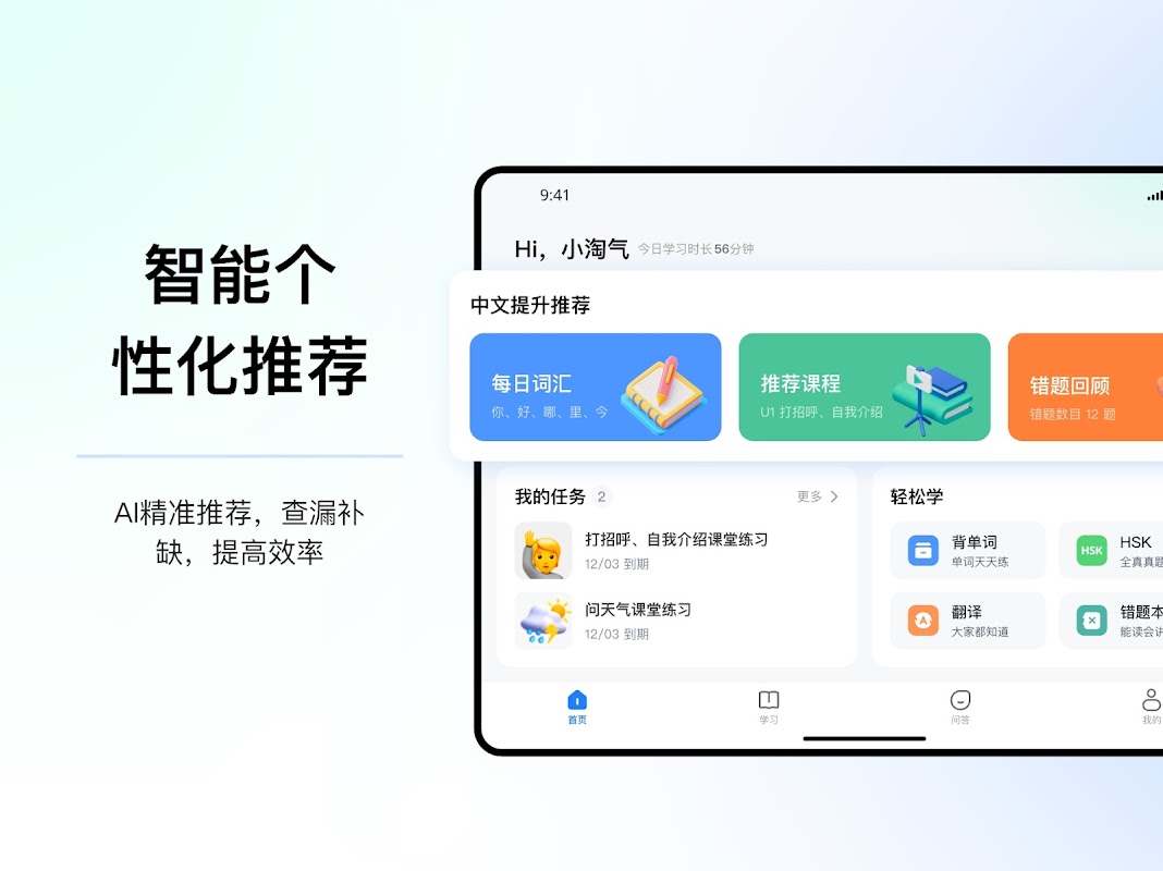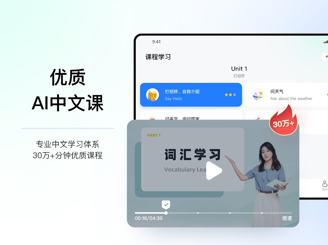 AI Chinese یک برنامه جدید یادگیری چینی است که مبتنی بر هوش مصنوعی و دوره های چینی با کیفیت بالا است. این یک پلت فرم آموزش آنلاین چینی آسان، کارآمد و شخصی است که به طور ویژه برای زبان آموزان چینی طراحی شده است. این نه تنها می تواند با معلمان برای تکمیل آموزش کلاسی تطبیقی همکاری کند، بلکه دوره های زبان چینی مربوطه را با توجه به سطح زبان آموزان توصیه می کند و به شما امکان می دهد یادگیری زبان چینی را به راحتی و کارآمد کامل کنید. چه شما یک زبان آموز مبتنی بر صفر باشید یا یک زبان آموز با پایه خاص، از طریق پلت فرم ما می توانید به سرعت مهارت چینی خود را بهبود بخشید!