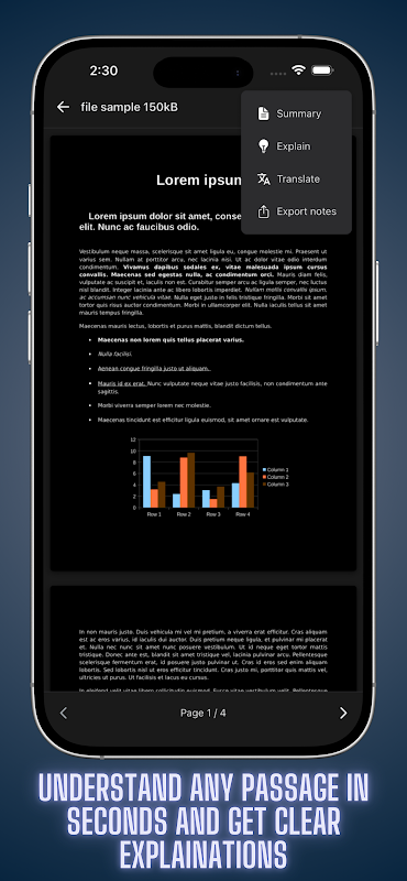 خلاصههای فوری از فصلها یا کل کتابها را دریافت کنید تا مفاهیم کلیدی و ایدههای اصلی را به سرعت درک کنید. ایدهآل برای دانشجویانی که متون پیچیده را مطالعه میکنند یا متخصصانی که اسناد مهم را بررسی میکنند.