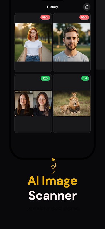 نیازی به حدس زدن نیست. بعد از هر اسکن، ما یک معیار ساده با امتیاز درصدی به شما نشان میدهیم. این معیار دقیقاً به شما میگوید که ما چقدر مطمئن هستیم که یک تصویر «واقعی» یا «هوش مصنوعی» است، بنابراین میتوانید به سرعت تصمیم بگیرید.