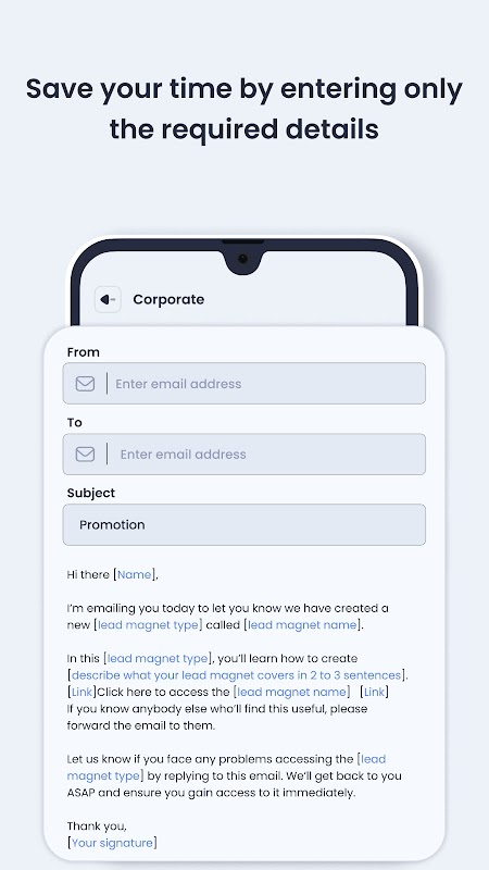 چندین قالب آماده برای استفاده از ایمیل برای شما آماده است. فقط دسته ایمیل خود را پیدا کنید و طبق نیاز خود ویرایش کنید و به راحتی ایمیل ارسال کنید.