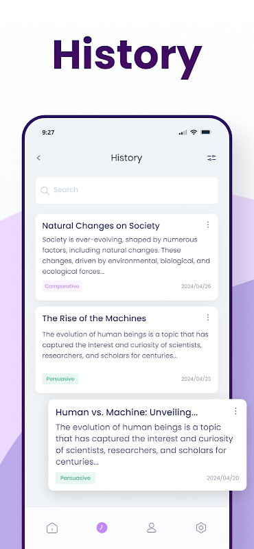 Essayness: برنامه Essay Writer می تواند به شما کمک کند تا هر ایده یا موضوعی را به مقاله های قانع کننده، سفارشی و منحصر به فرد تبدیل کنید. به عنوان یک دانش آموز، می توانید از این برنامه مقاله نویسی برای ساده سازی ایده ها، بهبود مهارت های مقاله نویسی و غلبه بر چالش های تحصیلی استفاده کنید. اکنون نوبت شماست که مقاله نویس Essayness AI را دانلود و نصب کنید و مقاله های هوشمندتر، سریع تر و بهتر تولید کنید.