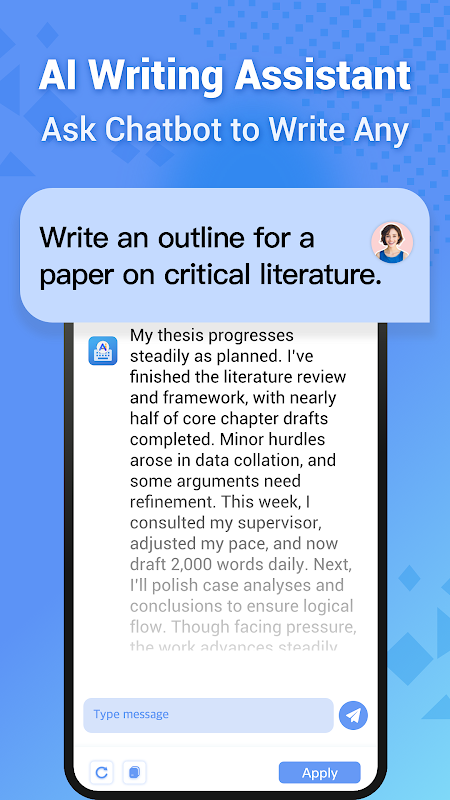 تجربه چت شخصی: صفحه کلید هوش مصنوعی - Writing & Chatbot با سبک و ترجیحات شما سازگار است و یک تجربه چت واقعا شخصی را ارائه می دهد. به سوالات به راحتی پاسخ دهید.