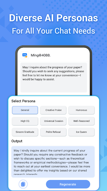 از صفحه کلید هوش مصنوعی - Writing & Chatbot استفاده کنید تا از هوش مصنوعی برای هر چت کمک بخواهید. به انواع تنظیمات پرسونا برای سناریوهای مختلف دسترسی داشته باشید. دستیار نوشتن ما به شما کمک می کند تا بر هر مکالمه ای مسلط شوید.