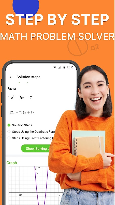 AI Photo Math, Calculator Math is a useful math learning tool used as a math problem solver scanner for students, parents and teachers. Powered by AI math image recognition technology, by taking pictures of math exercises, a math scanner by photo app exercises will help you quickly find the fastest and most correct math solutions with detailed explanations of that math problem solver. In addition, when using math solver camera, the application will automatically graph the function of that problem