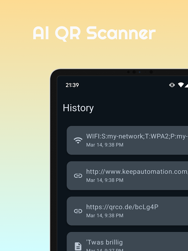 مدیریت آسان تاریخچه: کدهای اسکن شده را ردیابی کنید، هر زمان که خواستید دوباره به آنها مراجعه کنید یا تاریخچه خود را بدون زحمت پاک کنید.