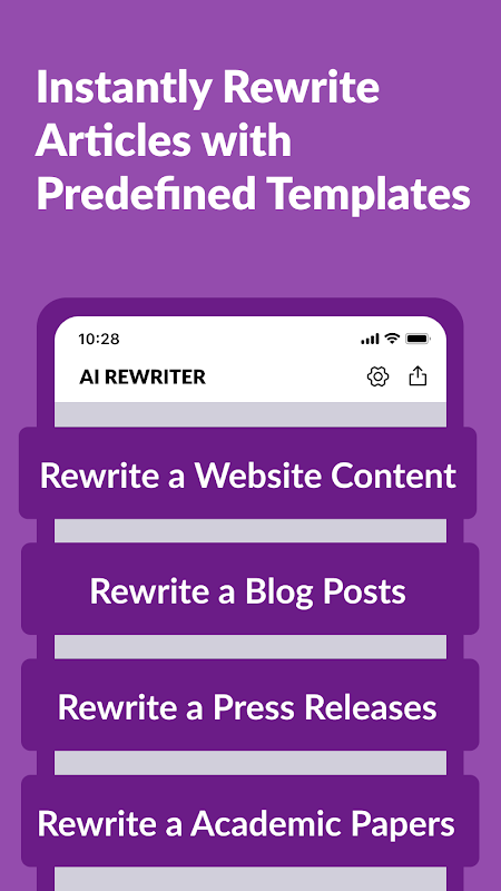 - ** بهره وری زمان: ** با خودکار کردن فرآیند بازنویسی محتوا، ساعت ها از زمان ارزشمند خود صرفه جویی کنید. برنامه مجهز به هوش مصنوعی ما می تواند حجم زیادی از متن را در چند دقیقه مدیریت کند.