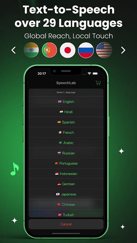 * پشتیبانی چند زبانه: برنامه ما از 29 زبان پشتیبانی می کند و آن را به یک ابزار صوتی واقعاً جهانی تبدیل می کند