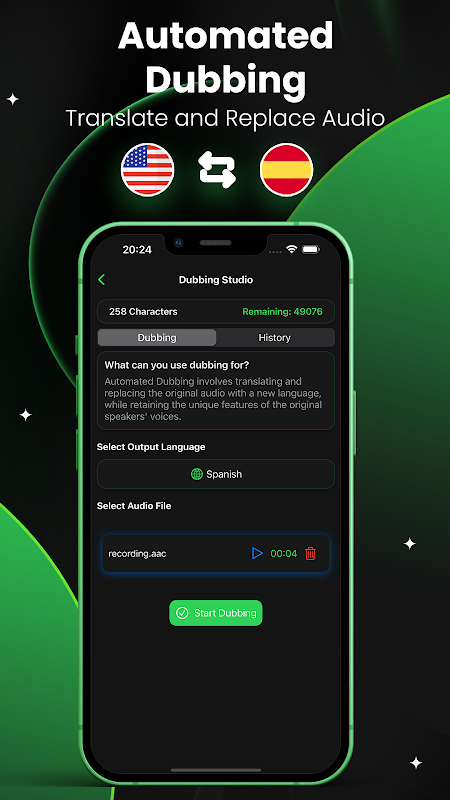 قابلیتهای پیشرفته «AI Voice Changer & Dubbing» را کشف کنید، یک برنامه تبدیل صدا همهجانبه که توسط فناوری Eleven Labs پشتیبانی میشود. ایده آل برای سازندگان محتوا، سرگرمی ها و علاقه مندان به صدا که به دنبال کشف ابعاد جدید صدا هستند.