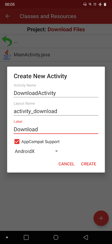 - ایجاد فعالیتها: با استودیوی AIDE ، می توانید به پوشه مورد نظر (درون کد منبع خود در پوشه "جاوا" بروید) و به راحتی فعالیت ها را ایجاد کنید. فقط نام کلاس و چیدمان را انتخاب کنید و استفاده از AppCompatActivity را انتخاب کنید. روند ایجاد پرونده های جاوا و xml (به ترتیب کلاس و چیدمان) به طور خودکار انجام می شود ، همانطور که اعلامیه فعالیت در AndroidManifest است.