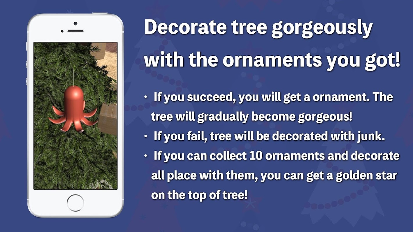 درخت کریسمس خود را بگیرید! با استفاده از این برنامه ، می توانید به سرعت یک درخت کریسمس در حدود 2 متر ارتفاع تنظیم کنید.