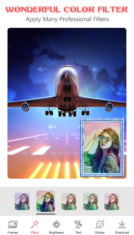 ouشما می توانید به راحتی با قاب های عکس هواپیما رنگ های مختلف ، جلوه های عکس یا فونت ها را بر روی تصاویر خود اعمال کنید.