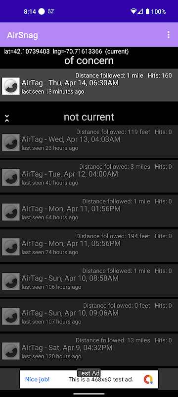 AirSnag runs in the background and periodically scans for AirTag signals. If one is found that travels with you for a specific distance and time, you will be alerted.