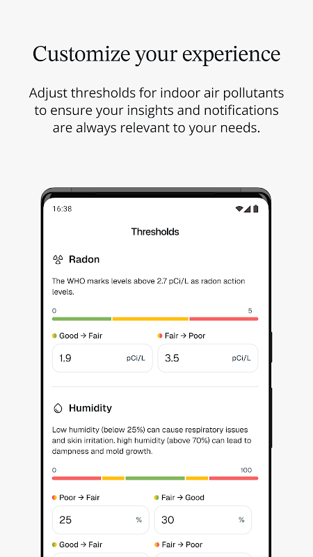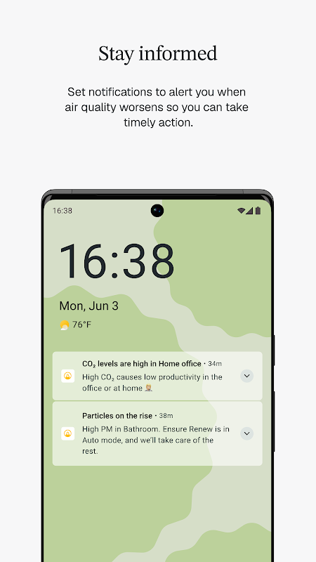 • اعلانها به شما از کیفیت بد هوا اطلاع میدهند و راههایی را برای بهبود سریع آن پیشنهاد میکنند
