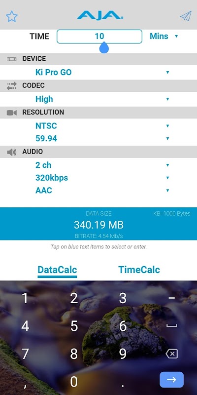 AJA DataCalc محاسبات لازم برای ذخیره سازی رسانه های صوتی و تصویری حرفه ای را محاسبه می کند.