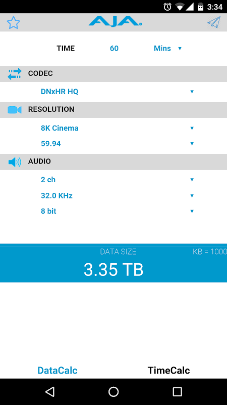 AJA DataCalc computes Storage Requirements for Professional Video & Audio Media.