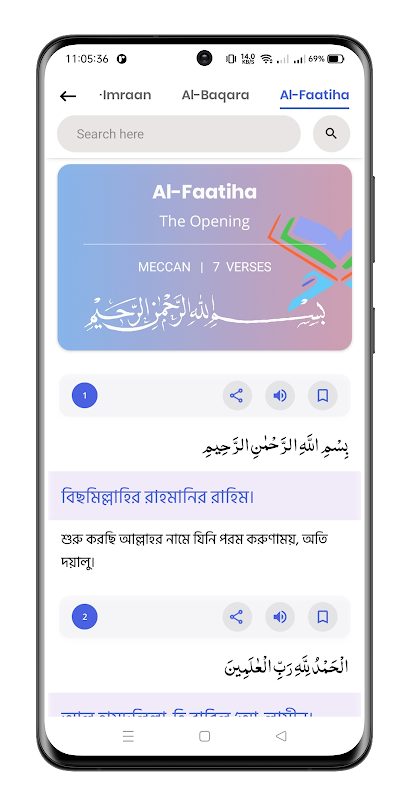 ویژگی ها در این قرآن با برنامه Bangla داده شده است.