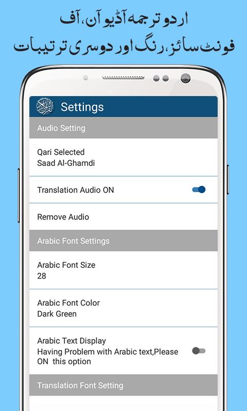 قرآن پاک اردو ترجما: (القرآن الكريم) اولین برنامه القرآن در بازار است که به شما امکان می دهد هر قاری را از لیست 17 مشهور قرآن انتخاب کنید و ترجمه صوتی همراه با تیلاات را برای درک بهتر قرآن کتاب مقدس خود گوش دهید. این برنامه قرآن مجید به کاربران اجازه می دهد تا تک سوره یا صوت کامل قرآن هر قاری خاص را با یک لمس دانلود کنند.