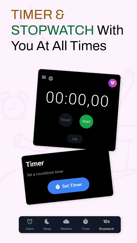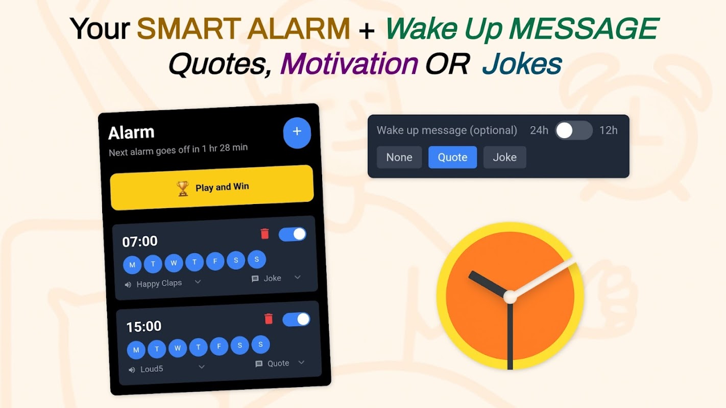 میخواهید روزتان را آنطور که دوست دارید شروع کنید؟ ساعت زنگدار - تایمر و یادآوری اینجاست! با چیزی که به شما الهام میبخشد، یک شوخی خندهدار که لبخند را بر لبانتان میآورد، یا فقط آهنگهای مورد علاقهتان از خواب بیدار شوید. این برنامه طوری ساخته شده است که کاملاً با زندگی شما سازگار باشد و استفاده آسان، انگیزه و تمام عملکردهای مورد نیاز شما را گرد هم میآورد.
