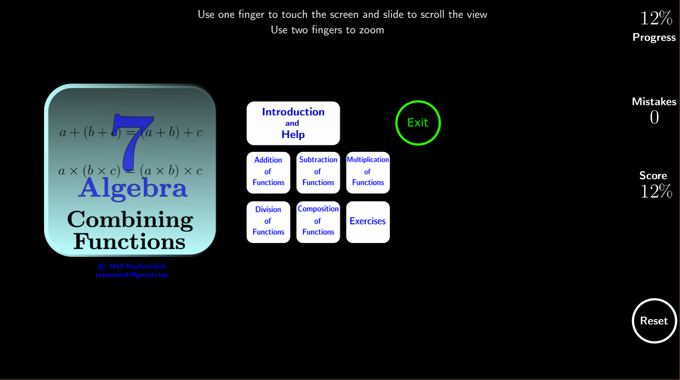 * بدون اینترنت کار می کند به طوری که می توانید جبر را در هنگام سفر در قطار، اتوبوس و غیره یاد بگیرید. اینترنت فقط برای پیوند به خط مشی حفظ حریم خصوصی و سایر آموزش ها مورد نیاز است.