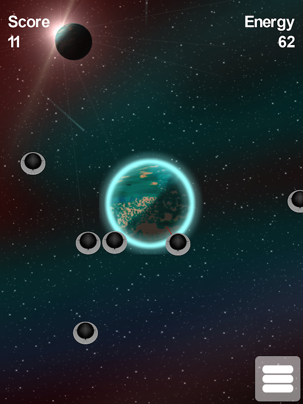 ما متوجه شده ایم که یک نیروی فضایی بیگانه در راه حمله به سیاره شما است. تا جایی که می توانید از سیاره ارزشمند خود محافظت و دفاع کنید. با لیزر می توانید کشتی های فرازمینی را نابود کنید. برای تنظیم علامت لیزر ، روی یک فضاپیما ضربه بزنید.