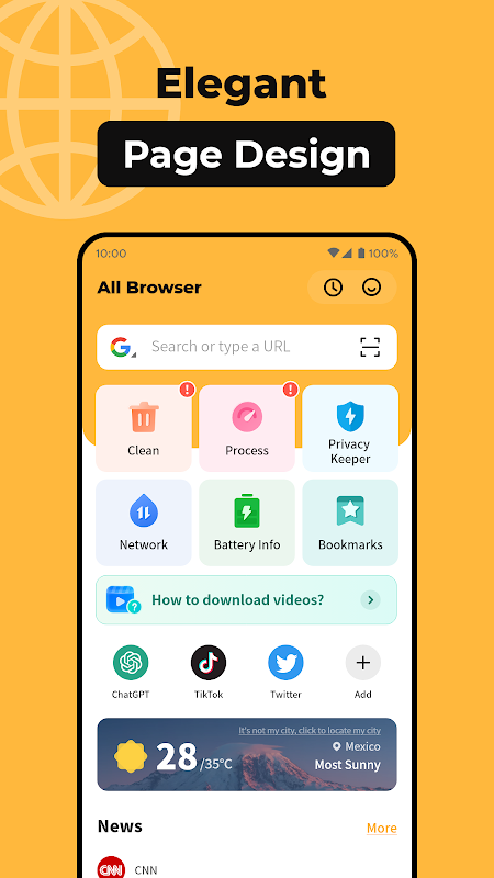 همه مرورگر مرورگری است که بر روی گوشی های اندرویدی متمرکز شده است. رابط طراحی ساده به کاربران کمک می کند تا بهتر از توابع استفاده کنند.