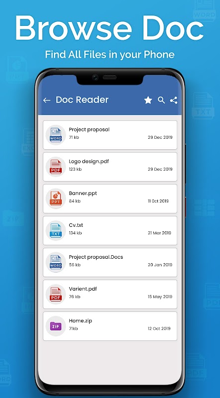 All document viewers are a fast way to read all documents instantly on your device. It helps to read all documents like excel, word, ppt, pdf, and others. It offers multiple features of reading documents including text, ppt, and all document files. The doc viewer allows you to manage and arrange all documents on your device. Edit any document, view it, save, and share any document with anyone. Manage all documents and arrange them in one folder or separate with name in your mobile. Doc reader & viewer is a fast way of reading word documents on your device. All document reader and files viewer has features of easy to access any document and share all documents via doc reader. Download all documents, read or edit them in one place easily and frequently. All document readers are fast and quick doc readers to view document files.