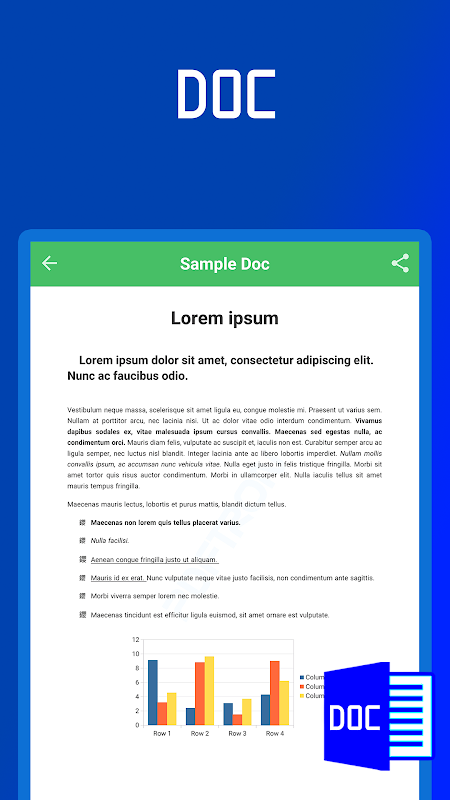 - Docx Reader یا docx viewer بهترین و سریعترین روش برای خواندن اسناد Word در تلفن همراه شما است.