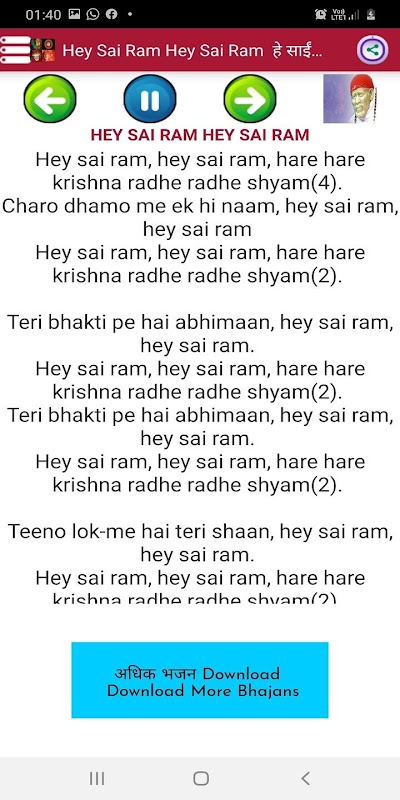 آهنگ های Sai Baba به طور مداوم پخش می شود و به شما قدرت و انگیزه و آرامش ابدی را می دهد که Sai Baba موعظه می کند.
