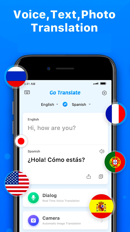 Speak and Translate (Traductor) نه تنها مترجم زبان یا مترجم متن است، بلکه ویژگی فرهنگ لغت را با ورودی صوتی برای همه زبان ها فراهم می کند. علاوه بر این، کاربر می تواند به سادگی کلمات یا جملات را تایپ کند و ترجمه آنها را به دست آورد. این صحبت کنید و ترجمه کنید.