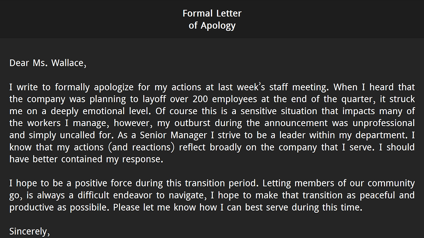 - Letter of apology