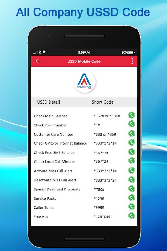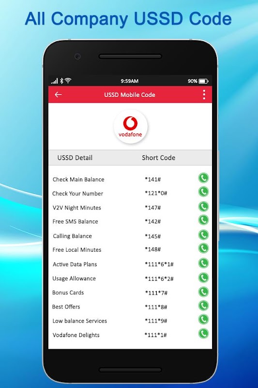 All Network USSD Codes App will help to find out the USSD Mobile Codes for All Mobile operators in India. Also this application can works without internet so you can access all USSD codes even if you are not connected to the internet.