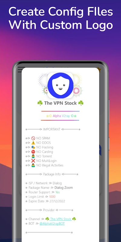 ✍️ سیستم VPN این برنامه بر اساس برنامه منبع باز V2ray-NG و ما ارائه می دهیم که همه سرورها 100٪ ایمن هستند. همچنین، میتوانید از این نرمافزار بهطور کامل بدون سرورهای برنامهها سفارشیسازی کنید.این برنامه 100% ایمن و ایمن است که توسط محافظان ویروس محبوب جهانی و محافظت از Google Pay مورد اعتماد است ✅. اگر با مجوز یا امنیت برنامه مشکلی دارید، لطفاً این پست را بخوانید: t.me/s/AlphaV2ray/38. متشکرم!