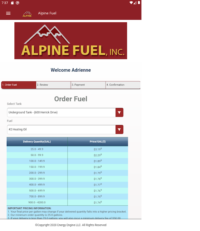 برنامه را بارگیری کنید و امروز برای تعیین قیمت ثبت نام کنید. درباره اینکه چگونه Alpine Fuel می تواند روغن گرمایشی با کیفیت عالی را مستقیماً به خانه شما کمک و تحویل دهد بیشتر بیاموزید.