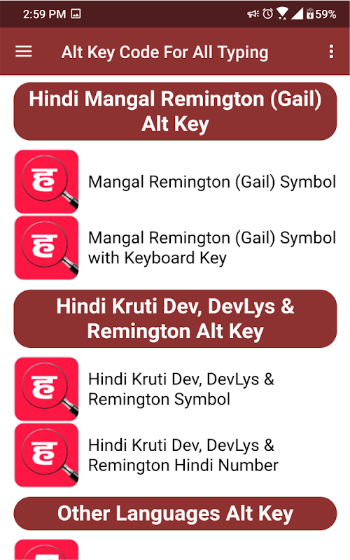 این برنامه به شما همه هندی و انگلیسی تایپ کردن کد کلید اصلی ، کد شخصیت ویژه و کد ترکیبی از شخصیت را ارائه می دهد. شما می توانید با استفاده از این برنامه بارگیری و بهره مند شوید و این برنامه را با دوستان خود به اشتراک بگذارید.