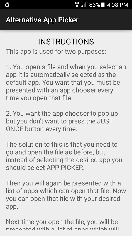 v1.1: Now App Picker is also shown when you are prompted to select images etc from another application.