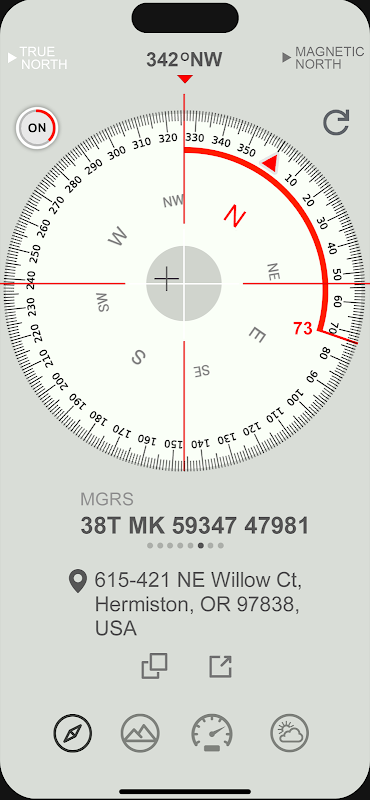با استفاده از قطب نما بسیار دقیق ما با اطمینان حرکت کنید. مختصات مکان دقیق خود را در قالبهای مختلف مشاهده کنید: