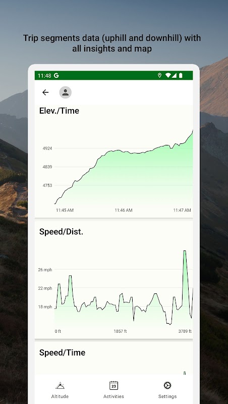 📉 نمودارها و نمودارهای روشنگر: عملکرد خود را با نمودارهایی تجسم کنید که ارتفاع در طول مسافت، سرعت در طول زمان و موارد دیگر را نشان می دهند.