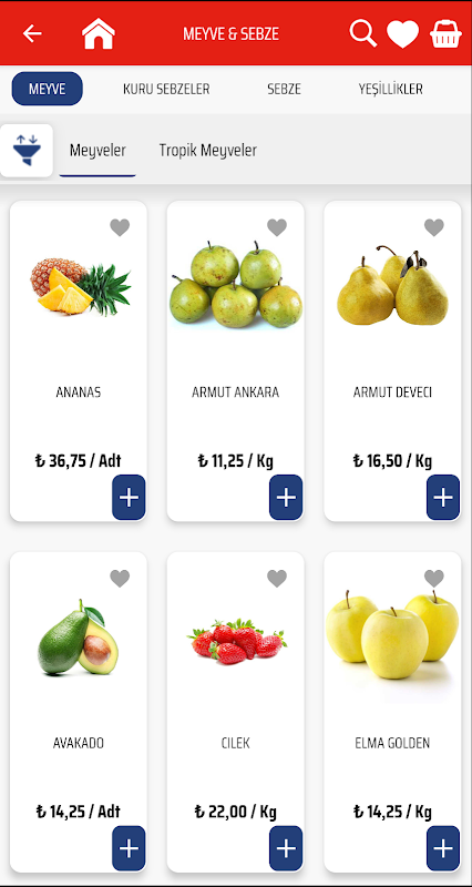 هزاران محصول در جیب شما با یک برنامه. هزاران محصول در دهها دستهبندی مانند محصولات تازه مانند میوهها و سبزیجات، گوشت، محصولات لذیذ، محصولات نانوایی، نظافت، محصولات مراقبت شخصی، تنقلات و نوشیدنیها در دسترس شماست. هر چیزی که می توانید از یک بازار بخرید همه در یک برنامه است. طبق قانون، محصولات دخانی و مشروبات الکلی را نمی توان به صورت آنلاین به فروش رساند.