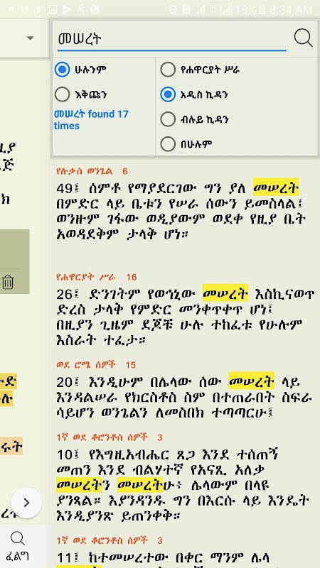 search جستجوی بهتر با جستجوی چند کلمه و امکان تغییر کتاب مقدس یا کتاب مقدس Amhara یا ترجمه دیگر.