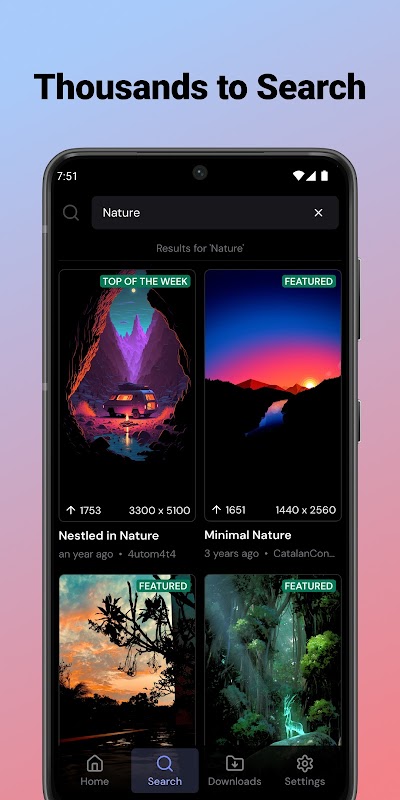 • Carousel Viewer: Swipe through downloaded wallpapers effortlessly.