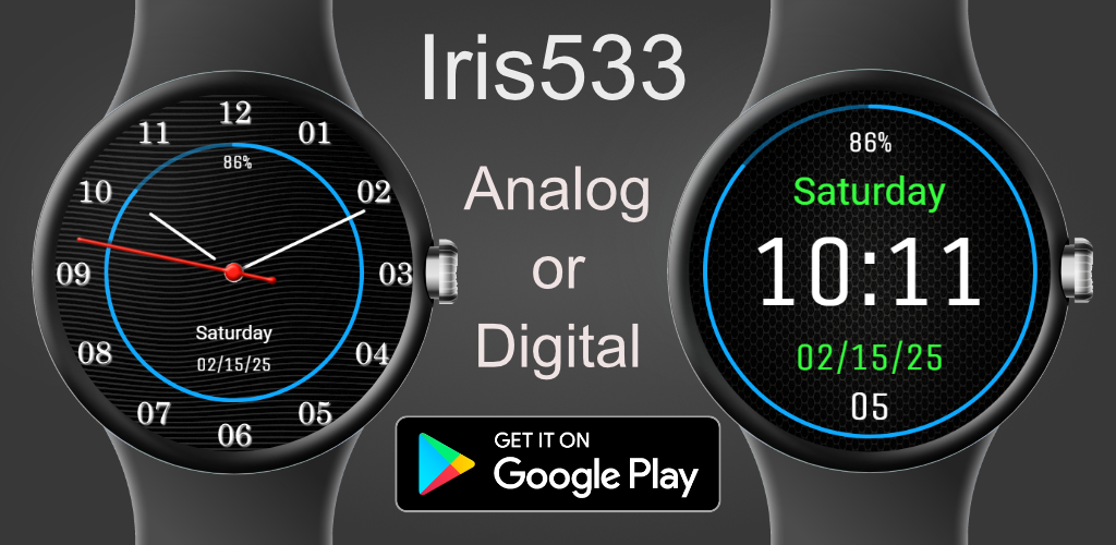 • فقط سیستم عامل Wear: صفحه ساعت Iris533 به طور خاص برای ساعت های هوشمند با استفاده از سیستم عامل Wear OS طراحی شده است.