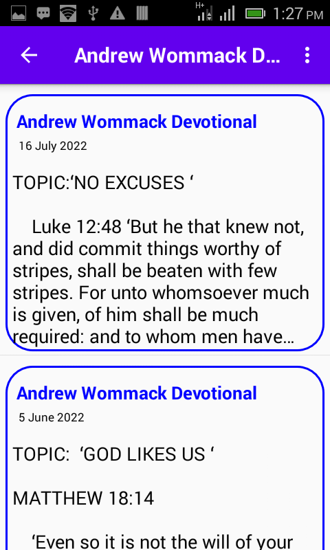 برنامه تلفن همراه Andrew Wommack Devotion ابزاری است که روشی آسان برای خواندن فداکاری روزانه شما در حال حرکت فراهم می کند، این یک رابط کاربری آسان را ارائه می دهد که خواندن ها را در تاریخ های تقویم سازماندهی می کند.