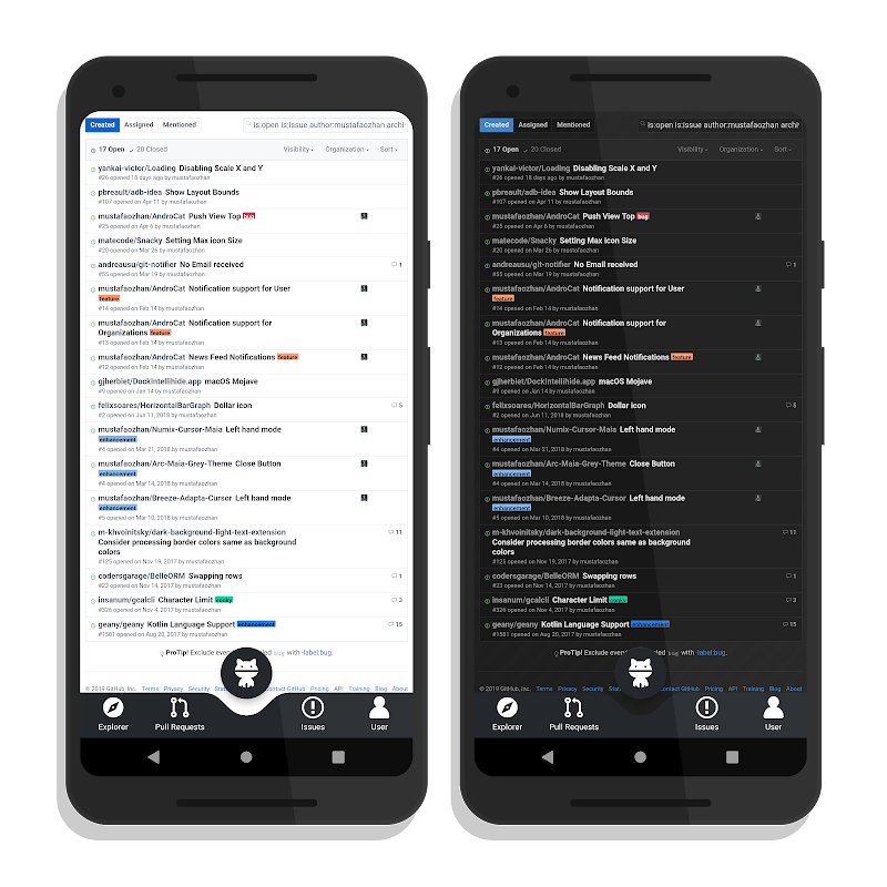 AndroCat is an unofficial Android client for GitHub with Normal/Dark Mode
