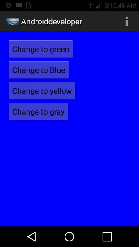 In this app you will click on the button which changes background by which colour you selected in color changing panel.This app is designed for changing the background instantly by colour.