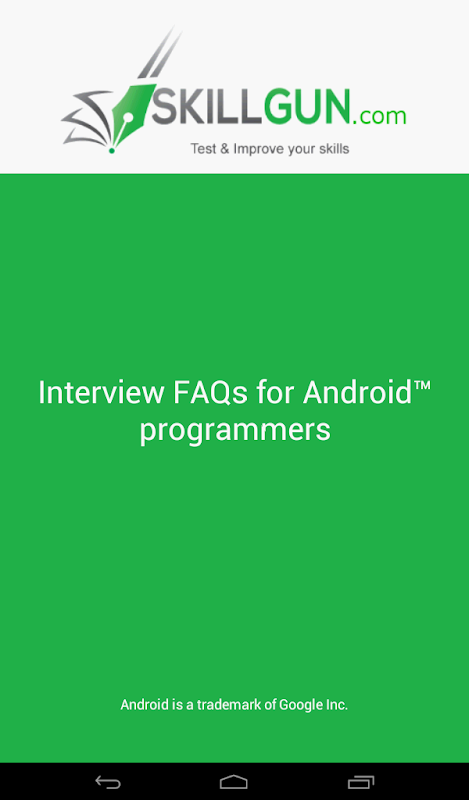 Set of 500 Interview Questions and Answers for Android™ programmers, Written and proof read by technical and development leads of Samsung. Your chances of getting job in mobile application development will increase with these set of questions. All Android interview questions in this applications are having clear explanations.