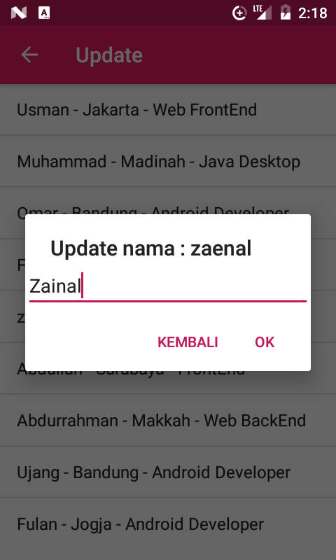 aplikasi ini adalah contoh penggunaan database SQLite pada android. sumber kode nya dapat di cek disini https://github.com/qodrorid/android-sql-crud