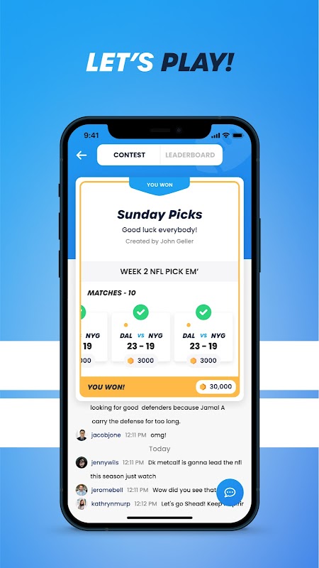 - برای اشتراک گذاری و رقابت با دوستان، خانواده و همکاران در طول رویدادهای ورزشی زنده، از جمله NFL و به زودی NBA، به سرعت به بازی های سرگرم کننده و ساده انتخاب کنید یا ایجاد کنید.