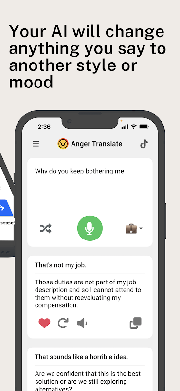 Anger Translate is an AI that can "translate" anything you say into a different style or mood. Need to respond to your boss without getting fired? Type up your real feelings in the app and let the AI take care of crafting the perfect message. The AI can even speak for you in real life using one of 6 Ultra Realistic AI voices. Yell with AI!