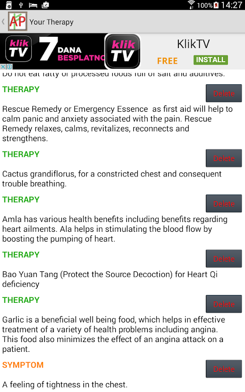 در نهایت، در درمان خود ضربه بزنید. شما یک لیست از علائم (به رنگ نارنجی) مخلوط با یک لیست از درمان (سبز) که شما انتخاب کرده اید را ببینید. روی هم رفته، علائم و درمان درمان خود را تشکیل می دهد. حال حاضر همه شما باید انجام دهید این است به دست آوردن راه حل های و شروع روند بهبود نهایی سلامتی شما.